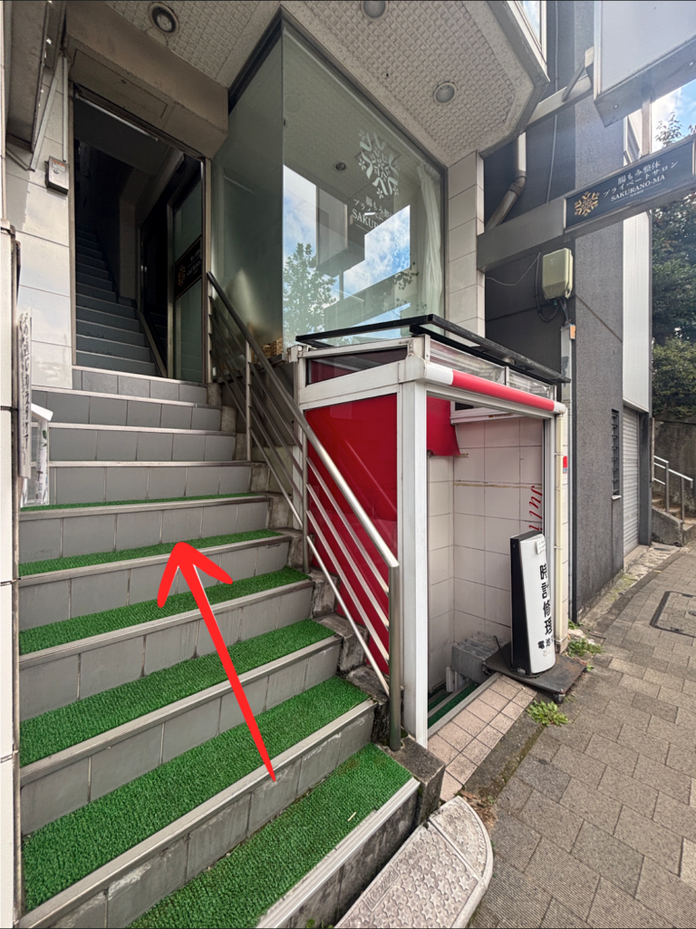 ⑥右へ曲がるとすぐ左手にレンタルサロンStepがあるリヨンドール赤坂です。