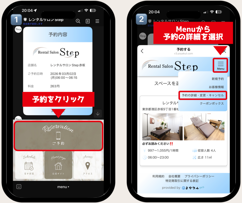 ②右上にあるメニューの中から「予約の詳細/変更/キャンセル」をクリックしてください。
