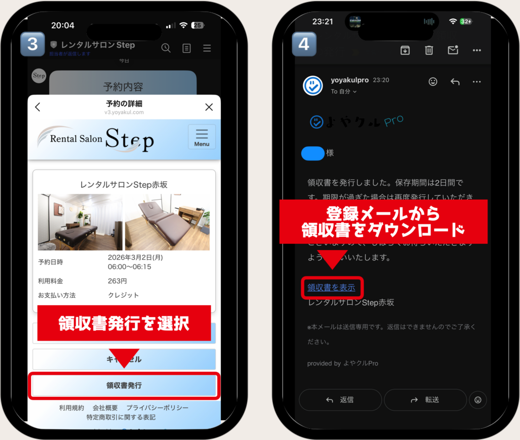 ④領収書が発行されるとご登録のメールアドレスにメールが届きます。